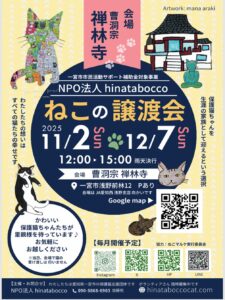 一宮市民会館・大会議室にて保護猫の譲渡会を開催します。